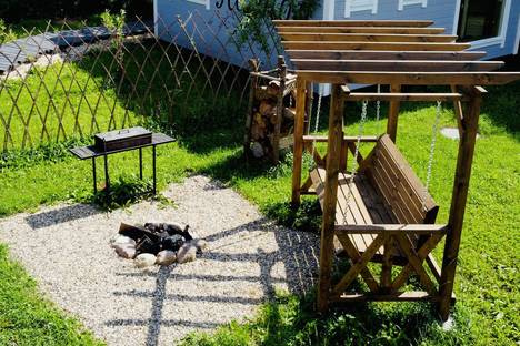«Ольга Ларина» - апартамент меньшего размера, но наличие панорамных окон в кухне-гостиной и выход из обеденной зоны на летнюю веранду создают эффект расширенного пространства. «Ольга» это уютная студия , рассчитанная на 4х человек с кухней-гостиной, и изолированной спальней . В спальне двуспальная кровать с удобным ортопедическим матрасом и огромный экран во всю стену с проектором для домашних киновечеров. В кухне-гостиной помимо полностью укомплектованной кухни и бара, есть очень удобный раскладывающийся диван, образующий полноценное двуспальное место. Авторский дизайн и использование натуральных материалов в отделке помещений придают особую аутентичность апартаментам. На внутренней территории апартаментов мангальная и костровая зоны и деревянные качели-скамейка с перголой. Апартаменты с первых секунд влюбляют в себя и делают ваш отдых в Суздале максимально уютным и красивым.
