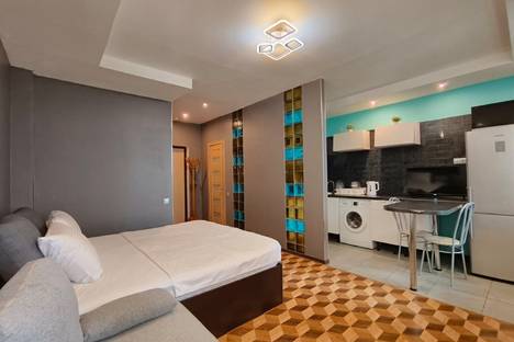 Площадь квартиры — 28,5 квадратных метров. В ней выполнен свежий ремонт, включая покраску стен. В спальне установлена широкая кровать и удобный матрас. Диван также можно разложить.