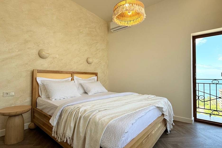 Просторная студия 43 м² с этническими акцентами и видом на море.