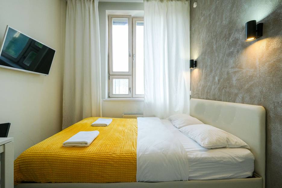 Расположение удобное, одна остановка от аэропорта на метро. В шаговой доступности магазины, кафе. В квартире все необходимое для проживания. Не понравилась уборка в номере, белье постельное было с запахом сырости или несвежести