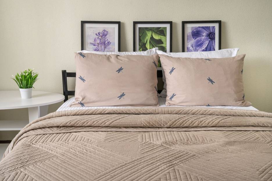 -в первой комнате находится двуспальная кровать и двуспальный диван;