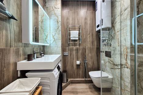 — Санузел: Стильный санузел с душевой кабиной, раковиной, зеркалом и феном. Стиральная машина, сушильная машина.