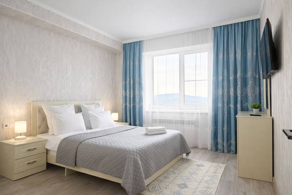 Хорошая чистая квартира, все необходимое для проживания есть. Останавливались на одну ночь. Охраняемая территория за шлакбаумом, рядом магазин Перекресток.
