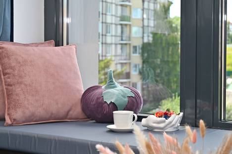 Светлая, солнечная студия с дизайнерским ремонтом и просторной лоджией с потрясающим видом на город Можно наслаждаться кофе за небольшим столиком и идеально расслабиться благодаря шторкам блэкаут для сладкого сна