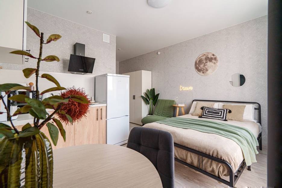 -Вся необходимая для комфортного проживания бытовая техника и мебель, а именно: телевизор, холодильник, кухонная плита, стиральная машина, микроволновая печь, электрический чайник, фен, двуспальная кровать, двуспальный диван-кровать, стол!