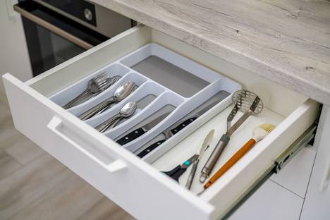 Функциональная кухня с варочной поверхностью, посудомоечной машинкой,вместительным холодильником, чайником и набором хорошей посуды для приема и приготовления пищи, столовыми приборами и аксессуарами.