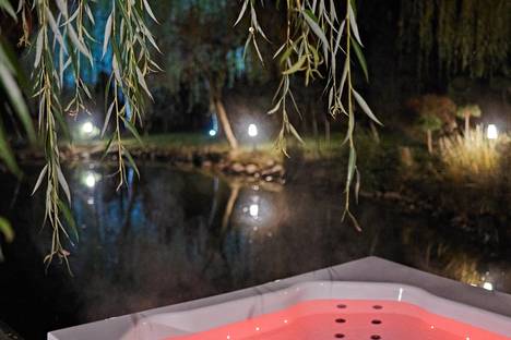 Этот домик с отдельной закрытой территорией вдали от всех с красивым панорамным видом на пруд и водопад Домик подходит для 2 семей Спальных мест до 7 человек.