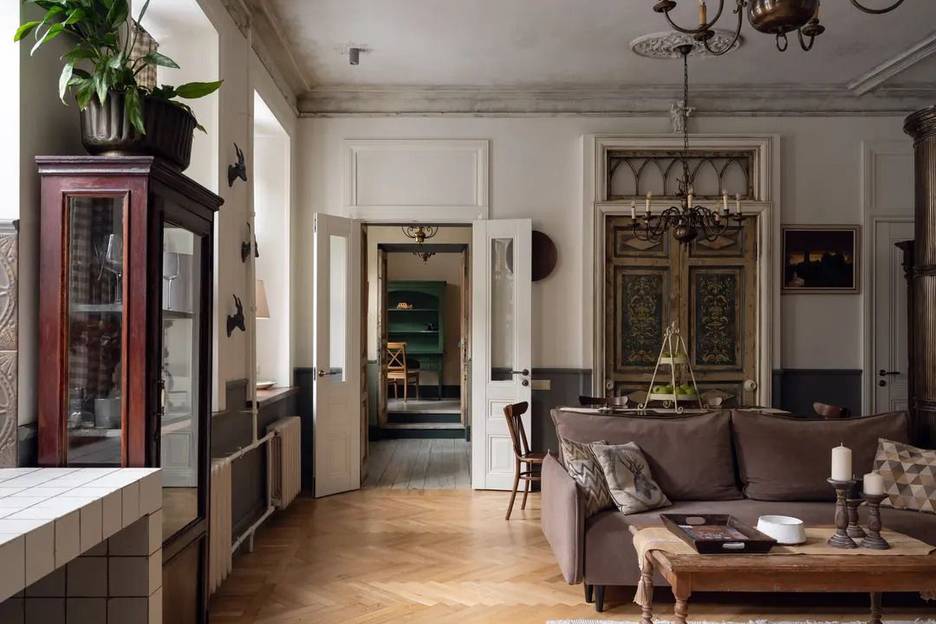В апартаментах просторная кухня-гостиная, одна спальня, комната с раскладной кушеткой и гардеробная.