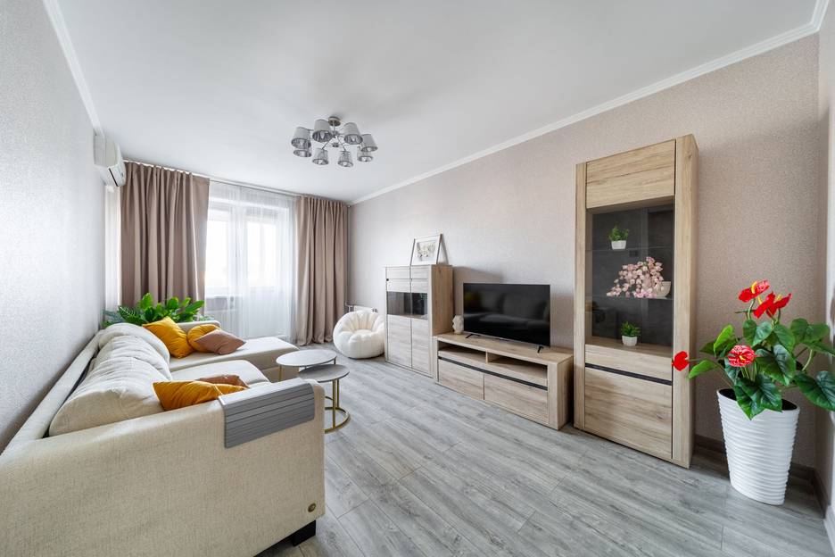 Уютная гостиная с диваном-кроватью, большим TV и быстрым Wi-Fi