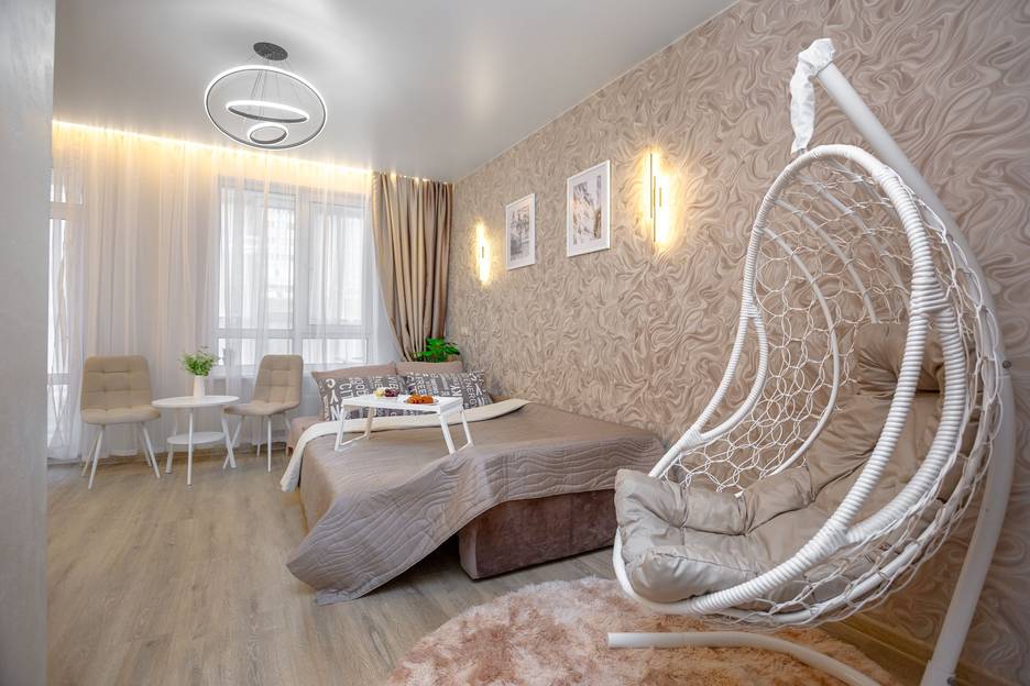Уютная студия RELAX, оборудована с любовью и заботой о Вас, с панорамными окнами, со свежим ремонтом и продуманной новой обстановкой - рассчитаны на комфортное размещение 2-х Гостей.