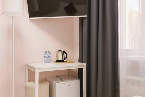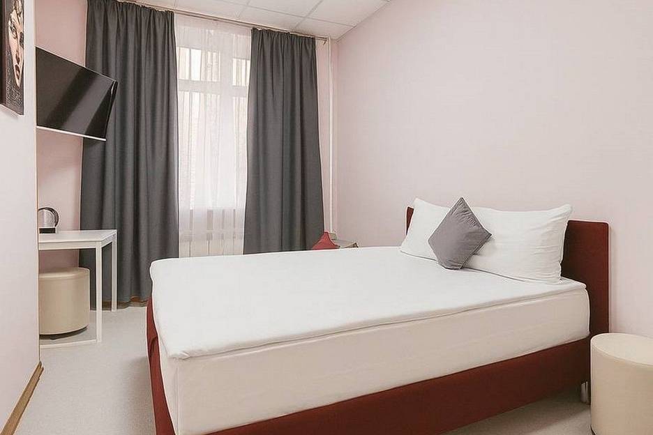 Отдельный номер с ремонтом площадью 12,4 м2. В номере: вешалка для верхней одежды, шкаф для одежды, двуспальная кровать 160*200 с ортопедическим матрасом, письменный стол, рабочий стул, телевизор от 43 дюймов, холодильник, чайник, чайный набор, питьевая вода 0,5 л., салфетки. Санузел с душем, фен, туалетные принадлежности (шампунь и гель для душа, зубной набор, туалетная бумага, освежитель воздуха). Махровые халаты и тапочки для двух гостей