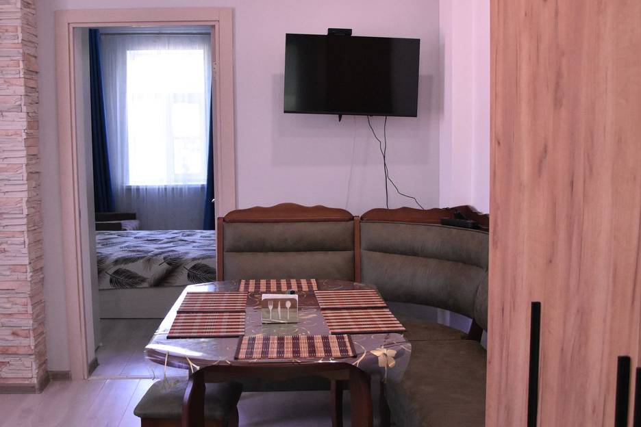 Двухкомнатная квартира с индивидуальным отоплением с новым ремонтом предназначена, для комфортного проживания 5-ти человек, в которой имеется: спальня, гостиная и кухня. Всегда своя горячая вода и отопление, без перебоев. В кухне есть вся необходимая посуда (тарелки, столовые приборы, стаканы, бокалы, кружки и прочее) и кухонной утварью (кастрюли, сковорода, дуршлаг и пр.), моющие и чистящие средства, новые тряпки и губки, электрический чайник, газовая плита, микроволновка, холодильник и кухонный стол со стульями. Санузел с душем и туалетом, пушистые банные полотенца для рук и тела, фен, одноразовые тапочки, жидкое мыло, шампунь и гель для душа на каждого гостя, туалетная бумага, стиральная машинка;