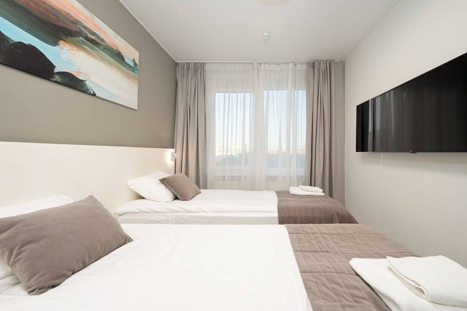- В местах отдыха: постельное белье на каждого гостя, ЖК телевизор со Smart TV, высокоскоростной Wi-Fi в номере бесплатно, зеркало в полный рост, шторы блэкаут, кондиционер.