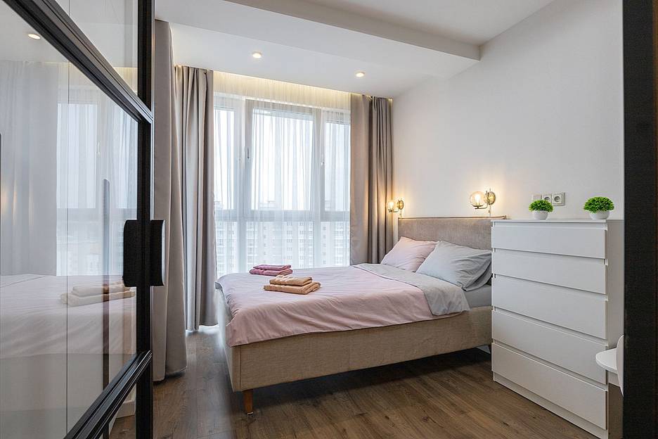 Квартира находится в шаговой доступности от станции метро. Очень чистая, просторная, с хорошим ремонтом, качественной бытовой техникой. Есть все необходимое для комфортного как кратковременного, так и длительного проживания.