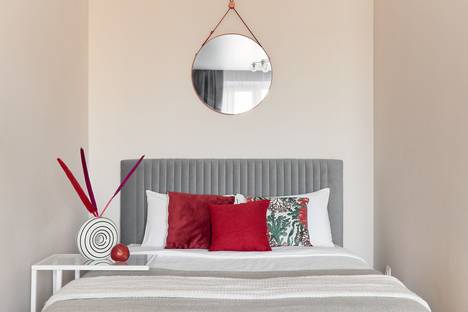 Изолированная просторная комната, в которой расположены двуспальная кровать и уютный раскладной диван. Панорамная остекленная лоджия позволит насладиться закатами и рассветами.
