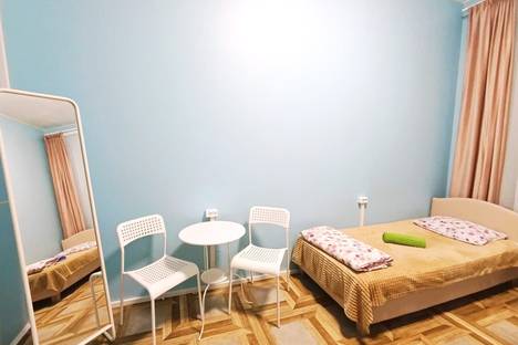 Уютная 2-местная отдельная комната с доп. местом по запросу. Кровати деревянные, матрасы средней жесткости, подушки гречишные, с ортопедическим эффектом. Оснащение комнаты: телевизор, гардеробная секция, столик, стулья, зеркало, урна, светильник потолочный. В стоимость входит: комплект постельного белья и полотенце. На территории 3 санузла в 5-10 шагах от комнаты. Из них: 2 душевые совместно с туалетом и 1 туалет отдельно. Большая кухня-столовая-гостиная, полностью оборудованная техникой и посудой для приготовления и приема пищи в любое время. На кухне дополнительно установлен фильтр для питьевой воды. В доступности чай, кофе, какао, сахар, специи, крупы. Вход в квартиру по электронному ключу без ограничений по времени.