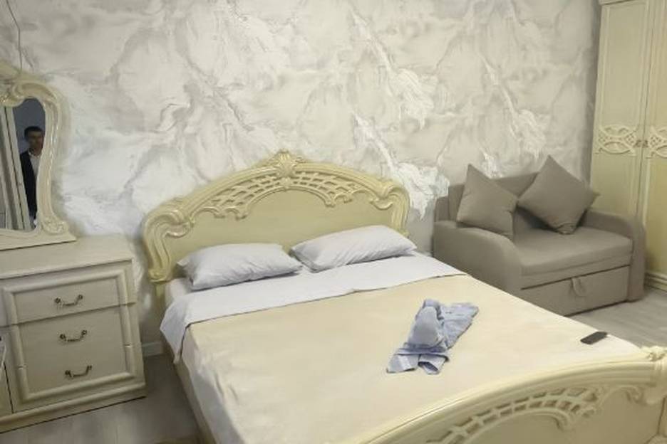 Комфортной двуспальной кроватью с ортопедическим матрасом, заправленной чистым постельным бельем, для третьего гостя – удобное кресло-кровать.