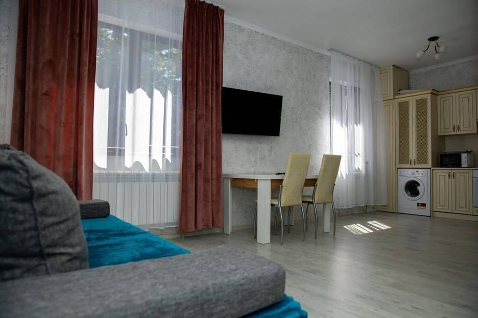 Домашняя усадьба ждет своих гостей в уютную и светлую студию. В студии имеется всё для комфортного проживания. На территории дома имеется парковка, оснащённая видеонаблюдением, зона барбекю с беседками и мангалом, зелёная зона, качели. Имеется большой бассейн с джакузи и фонтанами. Бассейн летний, в осенне-весенний период не работает. Посещение бассейна бесплатное. Бассейн работает с 10:00 до 20:00.