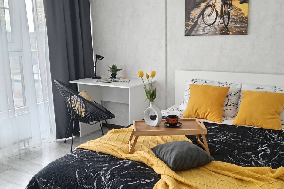 В квартире свежий современный ремонт, есть вся необходимая мебель и техника: двухспальная кровать, кухня, обеденная зона, холодильник, микроволновка, плита, вытяжка, большой жк телевизор, шкаф для одежды ,комод, ухоженный санузел, шторы блэкаут...... Всегда свежее постельное белье и полотенца, пена для ванны, предоставляем посуду, ванные принадлежности, вкусный чай, кофе.