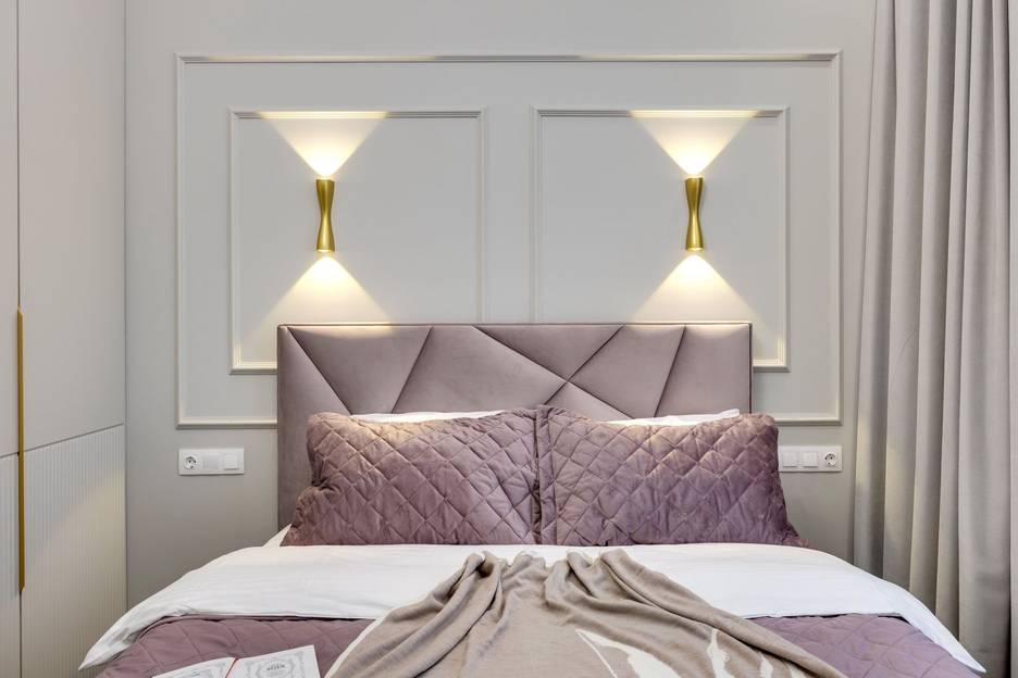 Гарантия отличного сна: уютная спальня с двуспальной кроватью 160x200 см с ортопедическим матрацем и шторами blackout для полного затемнения. В гостиной — удобный раскладной диван.