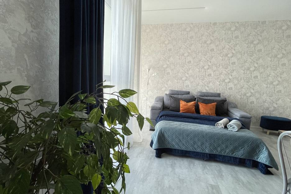 Апартаменты подходят для пары, семьи с ребенком или 1 гостя. Спальные места 2+1: двуспальный диван и при необходимости удобная раскладушка с матрасом ( как дополнительное спальное место). Просторный санузел, укомплектован всем необходимым.
