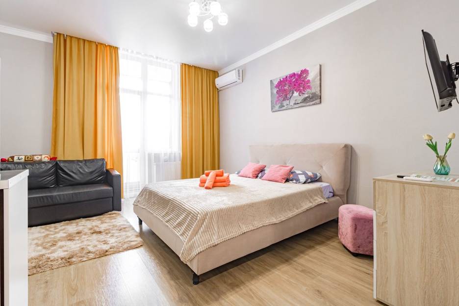 Уютная квартира с современным интерьером расположена в одном из самых престижных районов города. В шаговой доступности находятся главные достопримечательности: величественная мечеть Хазрет Султан, поражающая своей архитектурой, Национальный музей, богатый историческими экспозициями, и знаменитая «Пирамида» — Дворец мира и согласия, известный своим футуристическим дизайном.