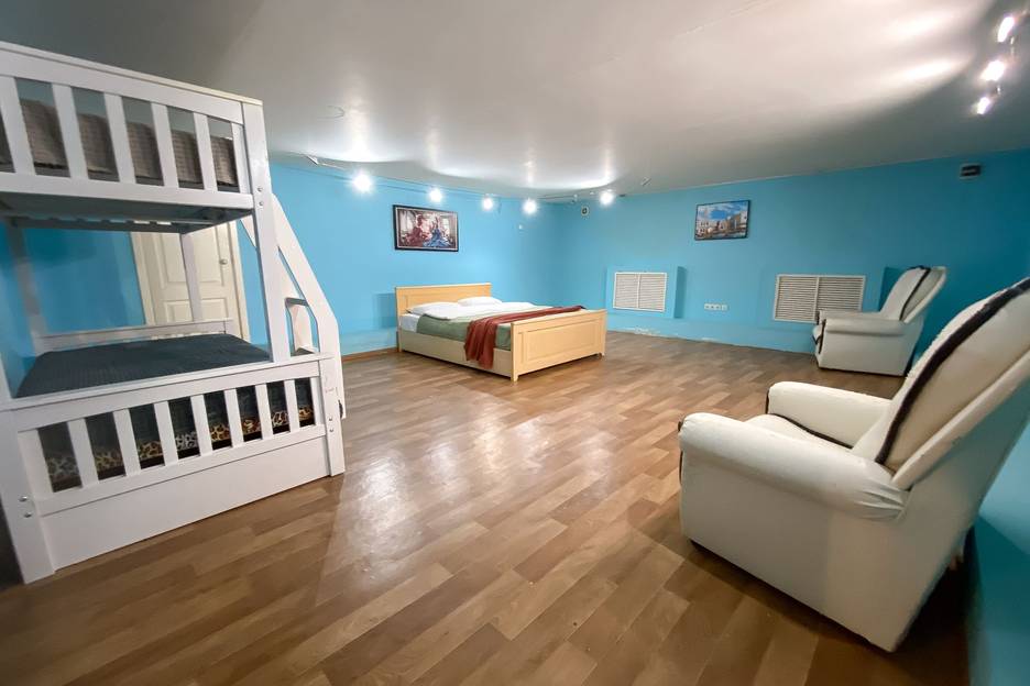 - Размещение гостей 2+2+2+2+2+2+1+1+1+1+1: четыре двуспальные кровати, 2 раскладных дивана, две двухъярусные кровати,
