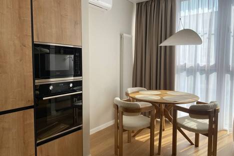 Современная кухня оборудована всем необходимым (посудомоечная машина, духовой шкаф, газовая плита, встроенный холодильник, свч печь), уютная обеденная группа и зона релакса.