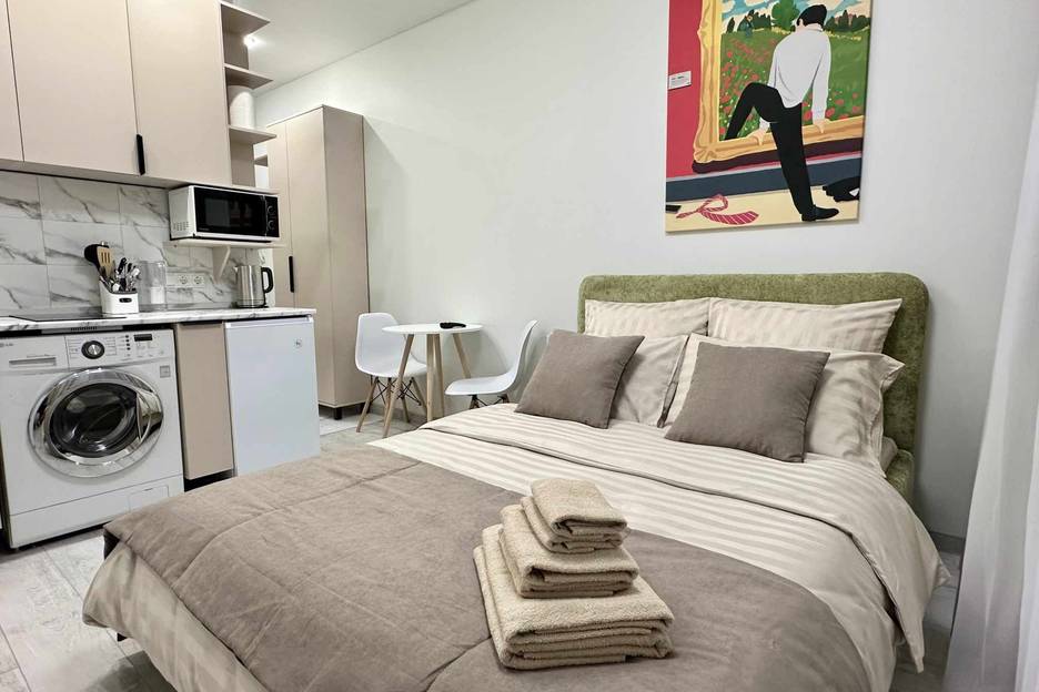 Удобное заселение, впервые с этим столкнулась, ключ в сейфе. Постоянно на связи через чат, в квартире все необходимое имеется: телевизор, кондиционер, посуда, полотенце, утюг, фен. Для меня было уютно и комфортно. Место расположения квартиры очень удобное, все рядом, в шаговой доступности: супермаркет, места отдыха, кинотеатр, сквер, недалеко центральный рынок.