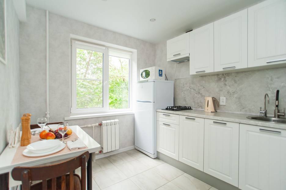 Отдельная кухня: Холодильник, микроволновка, всё для готовки.