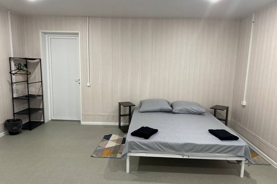 Комната с одной двухспальной кроватью. В комнате есть сан узел. Территория огорожена забором, на территории имеется парковка.