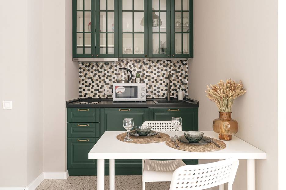 ● оборудованная кухня с варочной панелью, микроволновкой, холодильником и электрическим чайником;