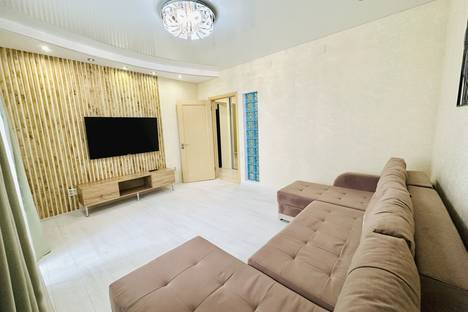 Светлая и просторная двухкомнатная квартира, расположенная в ЦЕНТРЕ города, на 9 этаже 14-ти этажного дома. В ванной комнате стиральная машинка, есть водонагреватель на случай отключения горячей воды.. В спальне двуспальная кровать, в гостинной двуспальный раскладной диван, большой плазменный телевизор со смарт-тв, есть рабочий стол. Кухня оборудована всей необходимой техникой: микроволновая печь, варочная поверхность, духовой шкаф, электрический чайник, также имеется вся необходимая утварь, обеденный стол и стулья.