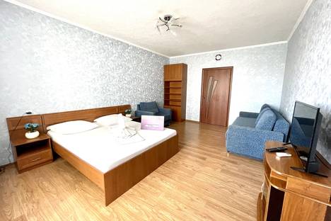 Описание квартиры «Flats-Line» в Брянске по ул. Красноармейская, 100: Однокомнатная квартира с хорошим стандартным ремонтом, есть кондиционер, установлена кухня с набором посуды, встроенной техникой; ЖК телевизор в комнате, шкафы; совмещенный санузел, отличная домашняя атмосфера. Полностью оборудована различной бытовой техникой. Спальные места: 2+2 (двуспальная кровать и двуспальный раскладной диван). Обратите внимание, что в однокомнатной квартире может быть два гостя, большее количество гостей только по договоренности .