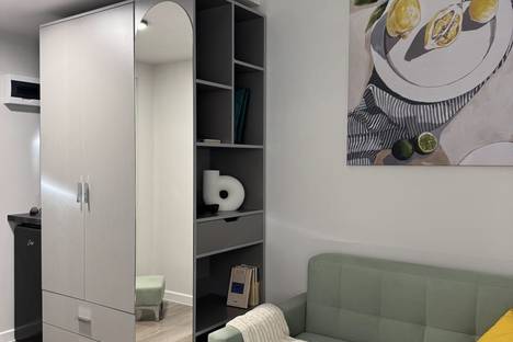 Уютная студия в новом комплексе, с благоустроенной территорией и местами отдыха. В студии проведён хороший ремонт, установлена вся необходимая мебель и техника. Для наших гостей есть всё необходимое для комфортного проживания, средства гигиены, постельное бельё, полотенца, посуда. Всё чтобы можно было отдохнуть после трудного рабочего дня. В здании комплекса есть спортзал, бесплатный для наших гостей и охраняемая стоянка под вашим окном.
