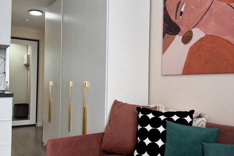 Уютная студия в новом комплексе, с благоустроенной территорией и местами отдыха. В студии проведён хороший ремонт, установлена вся необходимая мебель и техника. Для наших гостей есть всё необходимое для комфортного проживания, средства гигиены, постельное бельё, полотенца, посуда. Всё чтобы можно было отдохнуть после трудного рабочего дня. В здании комплекса есть спортзал, бесплатный для наших гостей и охраняемая стоянка под вашим окном.