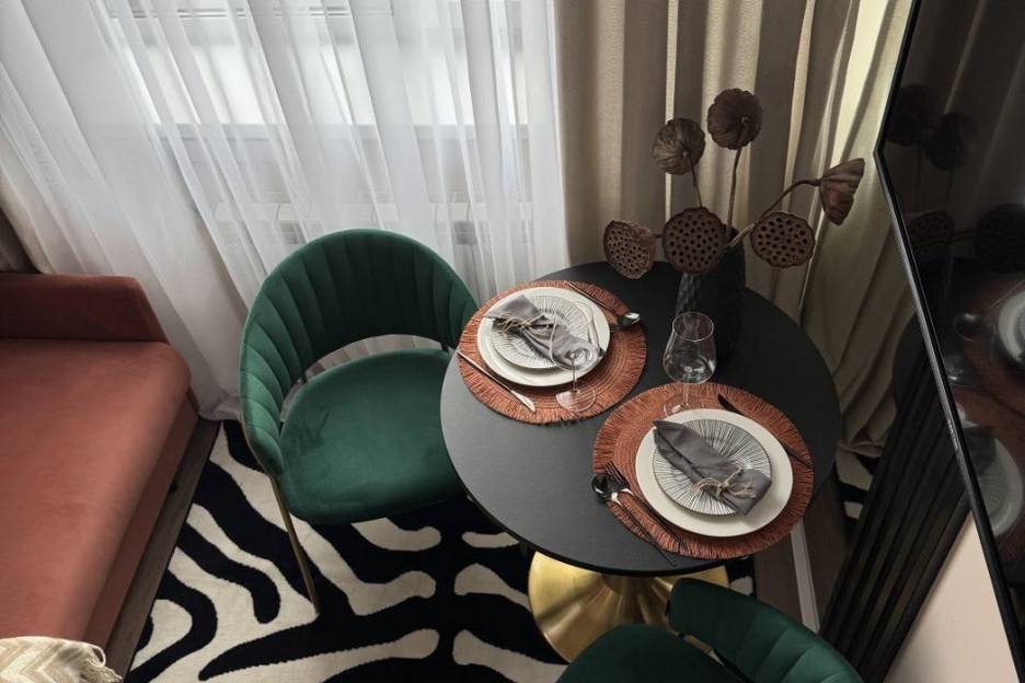 Уютная студия в новом комплексе, с благоустроенной территорией и местами отдыха. В студии проведён хороший ремонт, установлена вся необходимая мебель и техника. Для наших гостей есть всё необходимое для комфортного проживания, средства гигиены, постельное бельё, полотенца, посуда. Всё чтобы можно было отдохнуть после трудного рабочего дня. В здании комплекса есть спортзал, бесплатный для наших гостей и охраняемая стоянка под вашим окном.