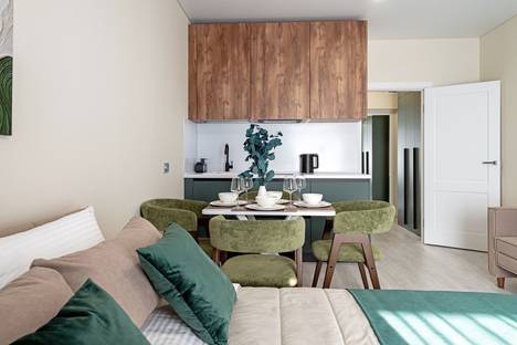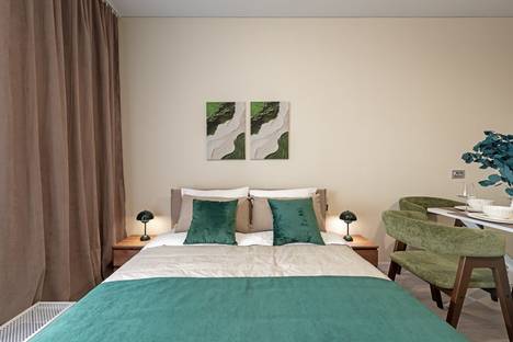 Новая стильная студия с большой кроватью и собственной кухней. Расположены в живописном месте на Набережной Макарова, в 10 минутах до Дворцовой площади.