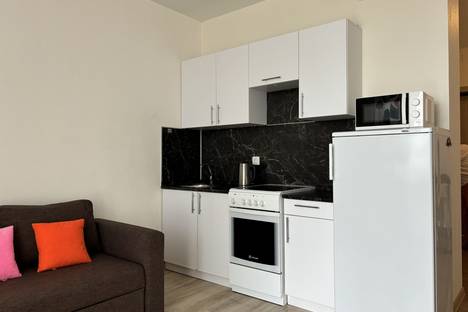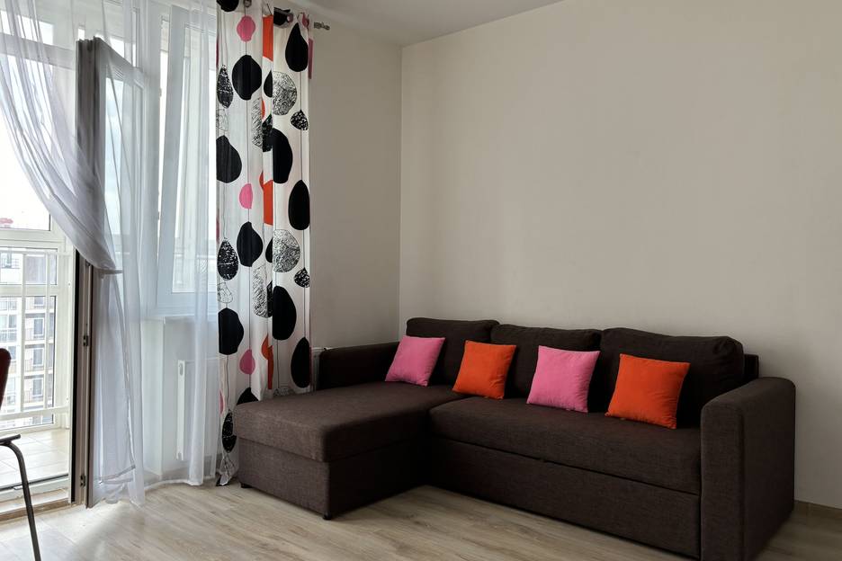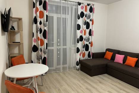 Начну сначала- приехали на машине и припарковалась без проблем. Бесконтактная система заселения. Студия на 4 с плюсом. До пешеходной зоны около 20 минут ходьбы. Пятёрочка минут 5. Мы довольны.