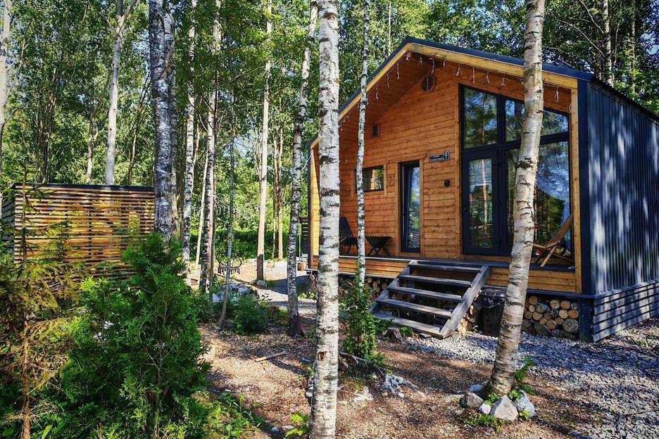 Домик в cтилe бaрн xаус 36кв.м с пaноpамным остeклением и прекрасным видом🥰, идеально подходит для отдыха до 4х человек. Всё необходимое в доме есть. Гостинная с расскладным диваном 140/200, телевизором, холодильником, микроволновой печью, вместительной кухней со всем необходимым в ней. Отдельная уютная спальня с двуспальной кроватью 140/200. Сан узел с душем, есть стиральная машинка, фен, и все предметы гигиены одноразовые гель для душа, зубные щётки, зубная паста и одноразовые тапочки для каждого нашего гостя.