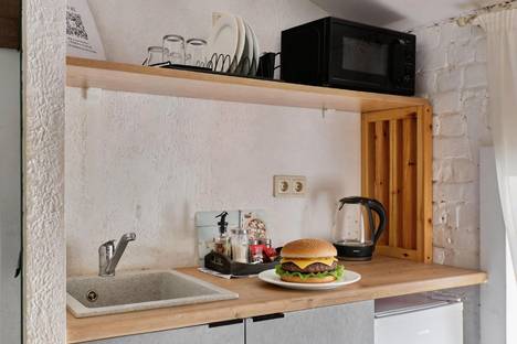 - Мини-кухня: СВЧ, холодильник, чайник и посуда на 2–3 персоны.