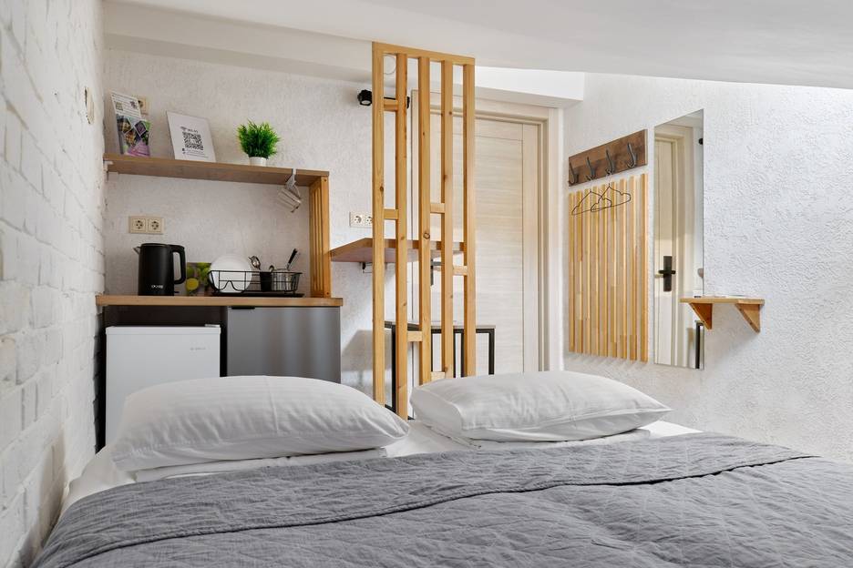 - Мини-кухня: холодильник, чайник, посуда на 2–3 персоны.