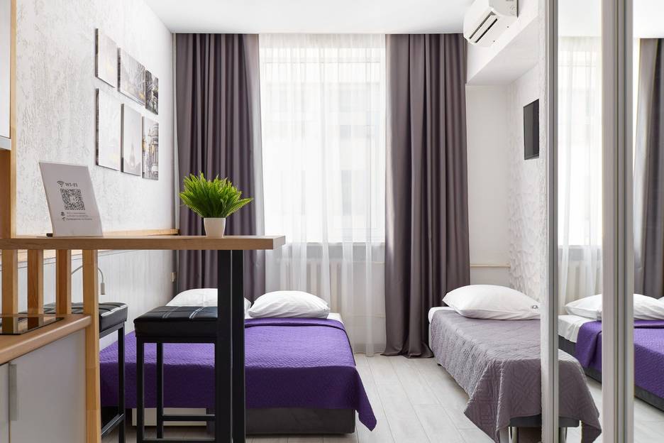 - Бесплатный Wi-Fi, кабельное ТВ, кондиционер, ночник и розетка в спальной зоне.