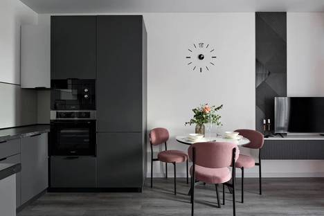 - Кухня с новой бытовой техникой (холодильник, посудомойка, индукционная варочная панель, духовка, стиральная машина, свч-печь, электрический чайник), а так же вся необходимая посуда и столовые приборы, фильтр для питьевой воды; чай, кофе, сахар, перец, соль, подсолнечное масло, средство для мытья посуды;