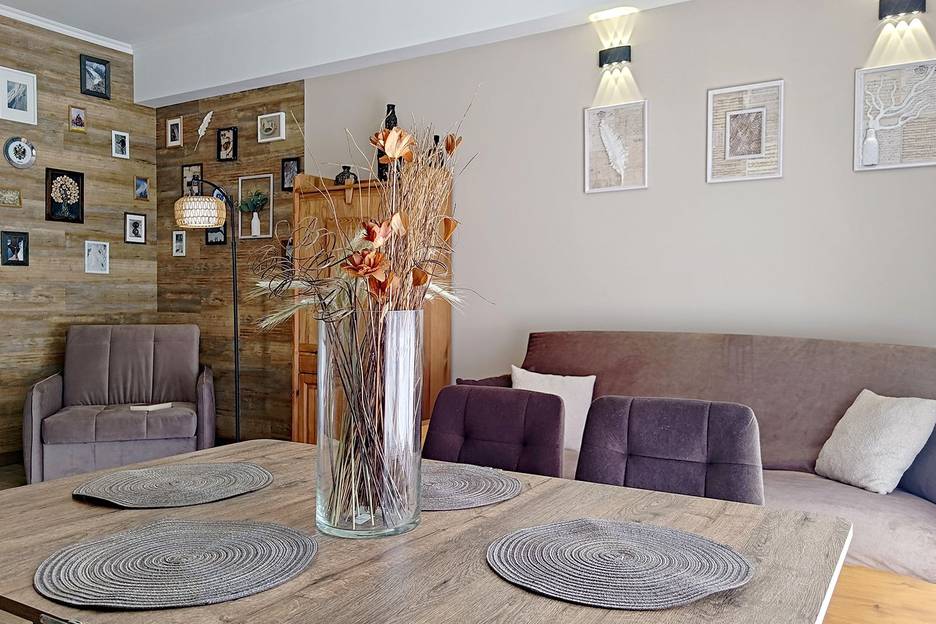 Просторный апартамент с видом на горы, выполнен в стиле рустик, приветливо встречает гостей тёплыми оттенками дерево в интерьере. Балкон открывает доступ к чистому горному воздуху и панорамному ландшафту, даря ощущение близости к природе. Уютный интерьер с мебелью из натуральной древесины, текстилем натуральных оттенков и декоративными деталями ручной работы позволяет полностью расслабиться и наслаждаться атмосферой спокойствия и гармонии.