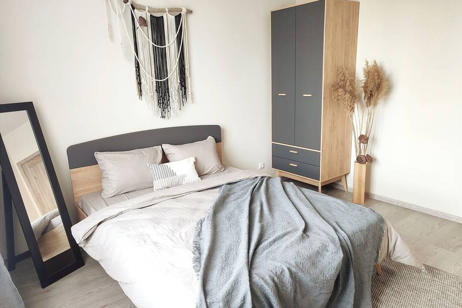 Квартира укомплектована всей необходимой бытовой техникой. В квартире есть большая кровать с классным матрасом, удобное кресло, обеденная зона, раскладывающийся диван с двумя дополнительными спальными местами, много продуманных мест для хранения вещей.