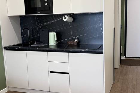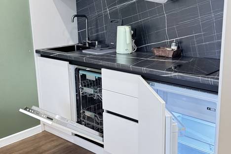 - полностью оборудованная кухня: индукционная плита, холодильник, СВЧ, посудомоечная машина (предоставляются таблетки для ПММ, губка для мытья посуды, полотенце), фильтр питьевой воды Аквафор 3 степени очистки, посуда для приготовления пищи, столовые приборы на три персоны, чай, сахар, специи