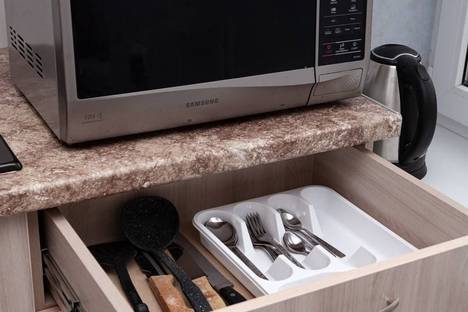 - Смарт ТВ, микроволновка, варочная панель, холодильник, кондиционер, стиральная машина, фен, утюг, гладильная доска, посуда