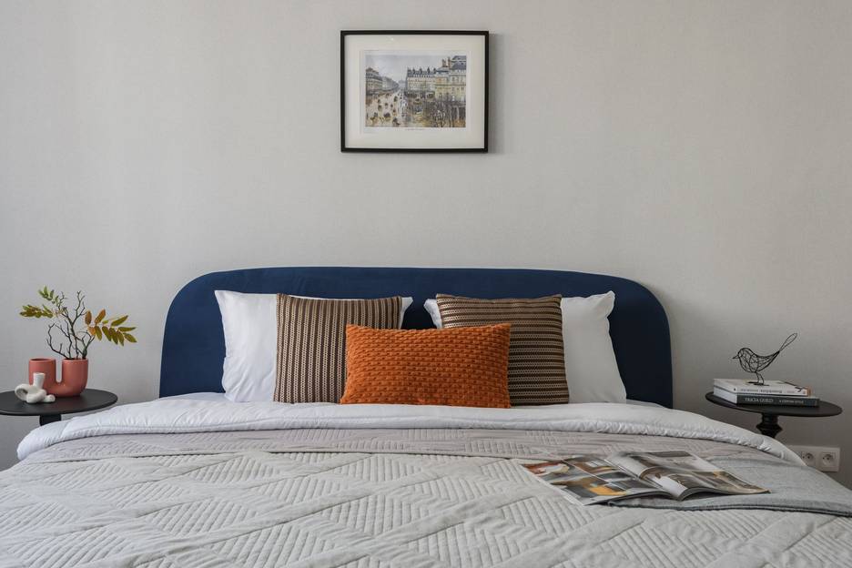 Удобную двуспальную кровать с ортопедическим матрасом и раскладной диван для двух дополнительных мест.