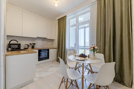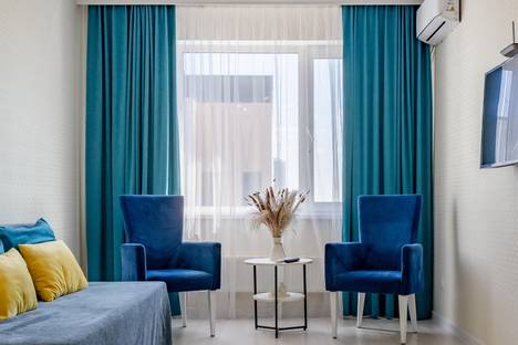 В апартаментах имеются светлая спальня, просторная гостиная с раскладным диваном. Прекрасный вид на город и парк.
